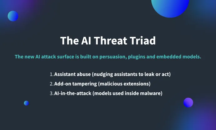 In Q3, the AI layer moved from the novelty and research sphere to being a serious part of the real attack surface. Three trends stood out: attackers manipulating AI assistants, targeting add-ons and extensions that power AI tools, and experimenting with ways to embed AI directly into attacks. These trends have been building all year, helping explain why scams now feel faster and more convincing.