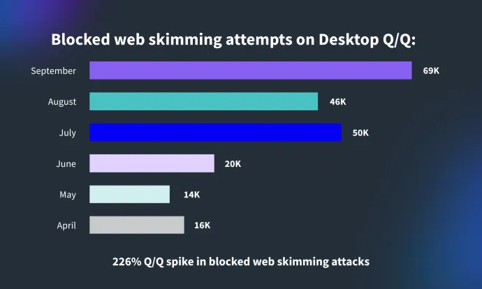 Criminals are shifting financial theft to where payments actually happen: online checkout pages and accounts payable. We saw two key patterns emerge in financial theft in Q3: more attempts to skim card data directly from merchant payment pages and a rebound in fake or altered invoices that reroute money during vendor payments.
