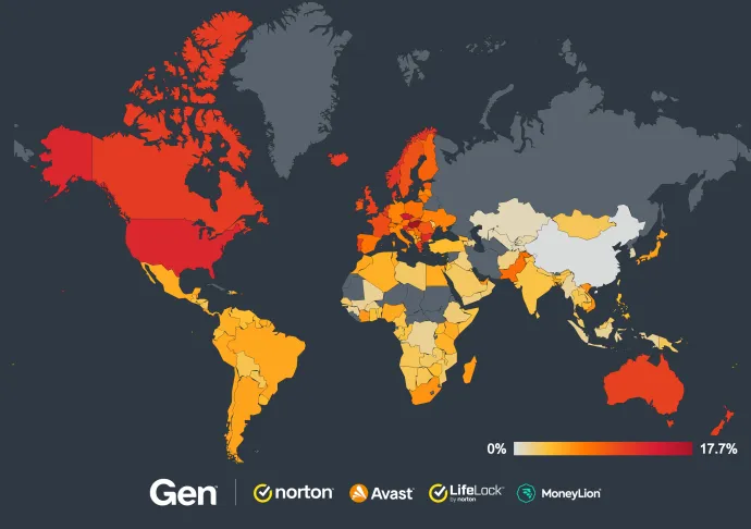 The way victims arrive at these sites is also telling. Rather than relying on spam email, scammers are buying placement in Facebook Ads and TikTok Ads. These ads can be highly targeted, so a fake offer for designer glasses, sneakers or kitchen gadgets can be shown directly to the people most likely to be interested. Fake shops are not a problem just in the United States. In fact, during October and November alone, we blocked almost 260 000 fake e-shop domains worldwide, which is around four times higher than the same shopping season last year. The map below shows the share of users we protected from fake shop scams in each country in 2025. Darker colors mean a higher proportion of people in that country ran into at least one blocked fake shop, with clear hotspots in North America, much of Europe and Australia, but activity almost everywhere.