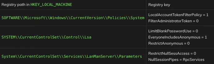 - Allowing local accounts to have full admin rights when they are authenticating via network logon