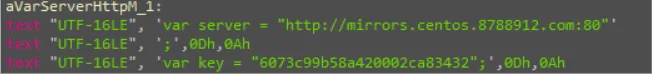 The first stage is a backdoor communicating with a C&C (mirrors.centos.8788912[.]com). Before contacting the C&C server, the backdoor performs several preparational operations. It hooks three functions: GetProcAddress, FreeLibrary, LdrUnloadDll. To get the C&C domain, it maps itself to the memory and reads data starting at the offset 1064 from the end. The domain name is not encrypted in any way and is stored as a wide string in clear text in the binary.