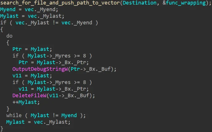 All plugin binaries used by the core module are stored in the working directory under the name kbg<tick_count>.dat. After the Core Plugin is loaded, it first removes all plugins from the working directory – see the image below.