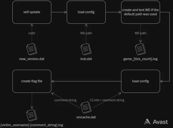 In the final step, the malware will iterate over C&C servers contained in the smcache.dat configuration file and will try to reach each one. The structure of the smcache.dat config file is as follows:
