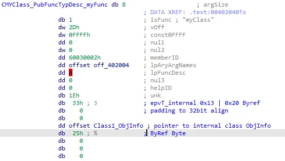 As we will show in this post, type information from internal structures will allow us to recover function prototypes for public object methods in standard VB6 executables.