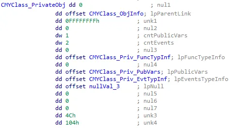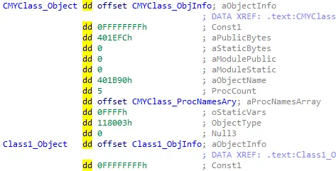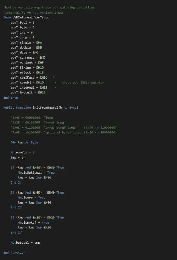 In this post, we have detailed several structures which will allow analysts to parse the VB object structures and extract function prototypes for public object members.