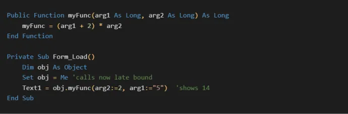 IDispatch allows functions to be called dynamically by name. The following VB6 code will operate through IDispatch methods: