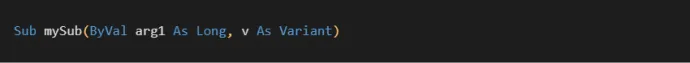 The above code, shows that 0x20, 0x40, and 0x80 bits have been set to represent ByRef, Array, and Optional specifiers. These are combined with the base types identified in the enumeration. These do not align with the standard VARIANT VARENUM type values.