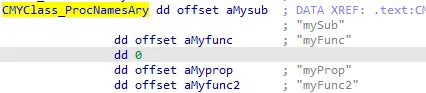 Note that there is a null pointer in the FuncType array above. This corresponds to a private function in the source code. If you look back, you will also see that same null entry was found in the ProcNames array listed earlier.
